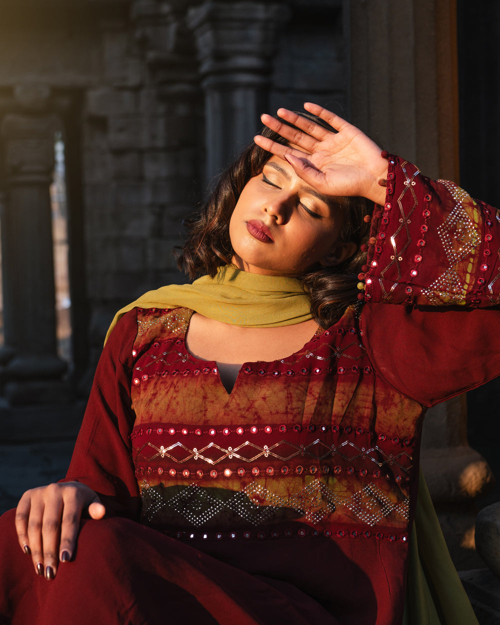 Experience the magic of Rajasthan with this handcrafted masterpiece, blending the artistry of bandhani bandej with the shimmer of mukaish mirror & sequence work.